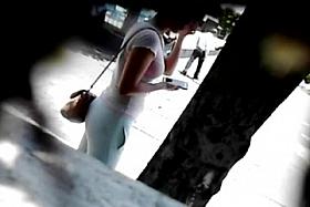 Voyeur secretly films woman pissing in the nature