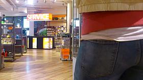 Girl in tight jeans pants at the supermarket