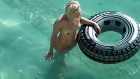 Pregnant hairy swims naked in the lake