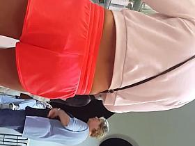 This posh girl looked like a million dollars, literally. She had her white shirt tied up above the cute belly button and I did my best to secretly chase her around the mall for some upskirt. I even managed to find another sexy chick in a short skirt and I show you her sexy panties as well.