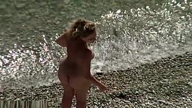 Beautiful fresh faced teen plays at the beach nude