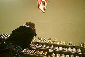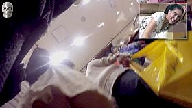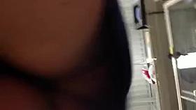 Mini jeans skirt on a flabby ass in accidental upskirt