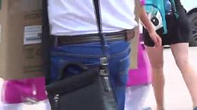 Hot Asian babe has her skirt ripped off by a street sharker.