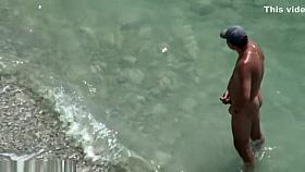 Buxom blonde filmed on a nudist beach