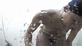 A hot asian black haired woman with ponytails starts undressing in a store's changing room while the security camera sows all of her beautiful and sleek mysteries as she puts on boob size extenders