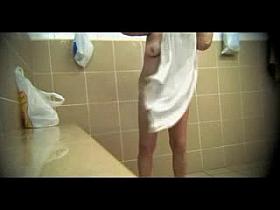 Filming her petite body in the locker room