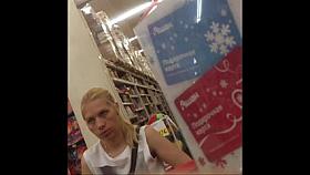 Sexy girl walking around a mall with a voyeur cam following