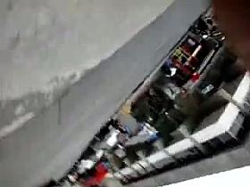 Voyeur mingled in the crowd and he picked a woman in short skirt to follow. Her short skirt bounced off her ass while she walked so he filmed it and saw nice upskirt views of her round butt with every step.