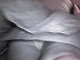 Busty mature woman filmed under water by her man taking off her panties and showing her shaved cunt.