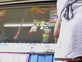 Upskirted a Blonde - Wow Tiny Denim Skirt!
