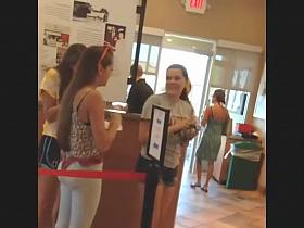 She got followed all the way to a bikini store and she stepped in a trying booth to check out how her new bikini looks like. Voyeur crouched down to spy her from under the door and he made an amazing video that primarily shows her firm little ass.