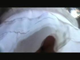 Fresh white thong seen up skirt of babe in the street