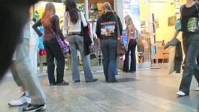 Hot black hair whore in a slutty skirt gets her crotch videoed