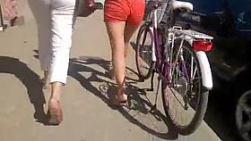 I discreetly approached this group of teens because that brunette hottie caught my eye. When you see her charming smile and that sweet round ass in grey tights, I'm sure you'll agree with me when I say there is unlimited ways she can make a man feel good.