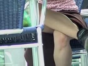 ATTRACTIVE BLONDE SPREADING HER SEXY ATHLETIC LEGS UNAWARE