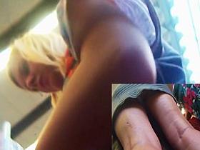 Great view up golden-haired's petticoat