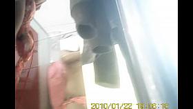 A spy camera in changing room takes a full view of an Asian changing her clothes