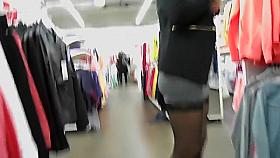 Blonde in mini skirt flashes her ass in upskirt mov