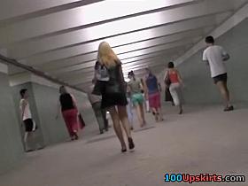 I noticed that angel in a short summer suit on a bus stop, and naturally, I followed her to let fly one more sexy upskirt clip. Imagine my fun when I discovered out that babe had body-colored transparent panty on!