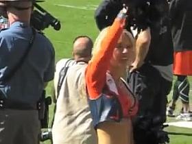 Eye-catching denim upskirt movie scene