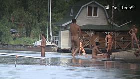 Buxom blonde filmed on a nudist beach