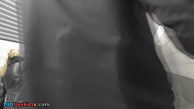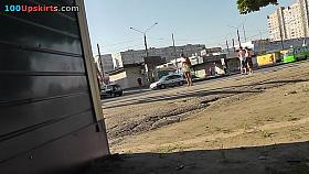 First of all, this gorgeous milf was appealing even from far away because her big butt outlined it's frame on that long skirt while she was walking. Secondly, when voyeur finally managed to take an upskirt look, he found a delicious shaved pussy with no panties under there.
