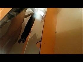 Surveillance camera films the desperate girl taking a piss