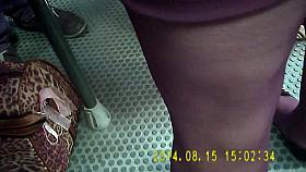 Candid camera voyeur presents cute girl with a round bum on the ladder.