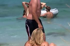 These two got spied as the passion took over their senses near the water on a beach and they fucked really quickly while at it. The girl was smiling in pleasure and even sucked his dick as a warm up before letting him in her salty vagina.