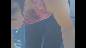 Dark haired girl and her shaggy tits in bra downblouse