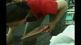 horny Asian chick downblouse showing off to spy camera