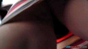 Hot redhead spied on by an up skirt perv