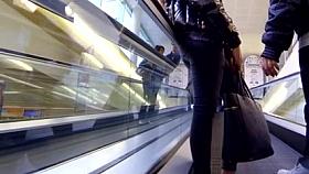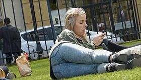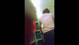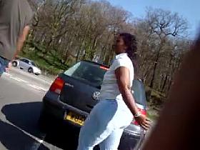 Brunette flaunts her massive booty in jeans for the candid cam