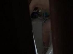 Naked woman peeped on as she wipes off