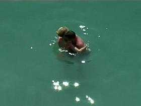 Topless girl in pool