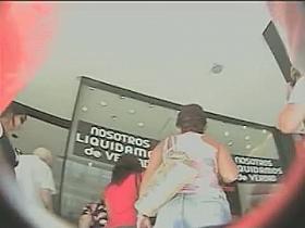 Real upskirt voyeur video of a big ass brunette chick