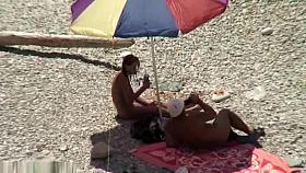 Nudist woman sucks her man cock