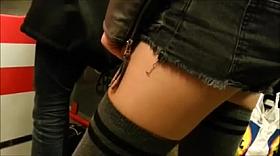 G-string upskirt footage of a babe wearing mini skirt