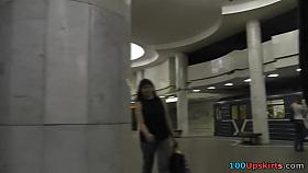 Lustful man involved the poor Japanese girl into the nasty sharking adventure. He mercilessly uncovered her very erotic and small panty thong on the spy camera.