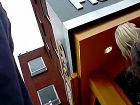 Blonde beauty got on the horny downblouse close ups