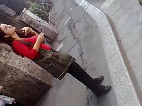Amateur redhead shows sexy legs in candid upskirts