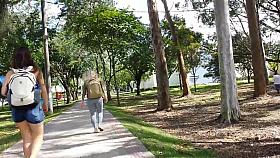 Walking behind this rave girl was a party on it's own, because I got to look at her attributes from such a close proximity. Her ass was squeezed solid in those light blue shorts and she had a bunch of colors all over her. She ignored the fact I'm walking so close to her because she's probably used to being stalked.