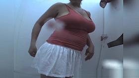 Oozing pears of her tits on the hidden cam in change room