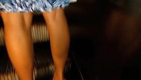 Sexy lingerie girl trying on tight dress for voyeur hunter