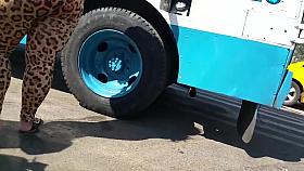 Candid street booty of girl in spandex tight costume 07l