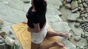 Busty round ass on cute curly brunette upskirt