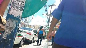 Voluptuous rear end caught on an upskirt voyeur spy cam