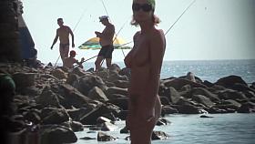 Real exhibitionist strokes his horny dick on a public beach