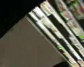 Gal with auburn hair was filmed by voyeur who put his cam up the skirt. He filmed her skinny ass, covered with a thong.