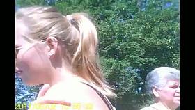 On a beach 2 white girls lie and tan, one is skinny and has a nice shaved puss. The other bigger tits and a little larger. The skinny brunette gets up and walks away, her ass bouncing up and down as she walks. A third woman with styled hair is nude.